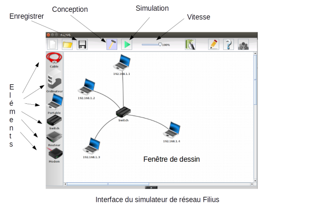 Le logiciel Filius est un logiciel de simulation de réseau développé par une université allemande. Une documentation en Anglais est disponible.