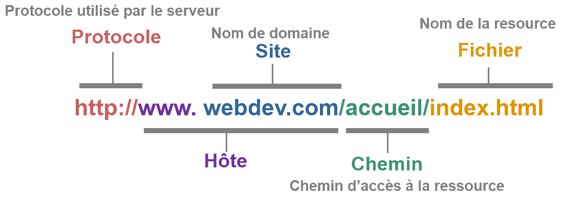 Une URL[2] (Uniform Resource Locator) est l'adresse d'une ressource d'un site Web :