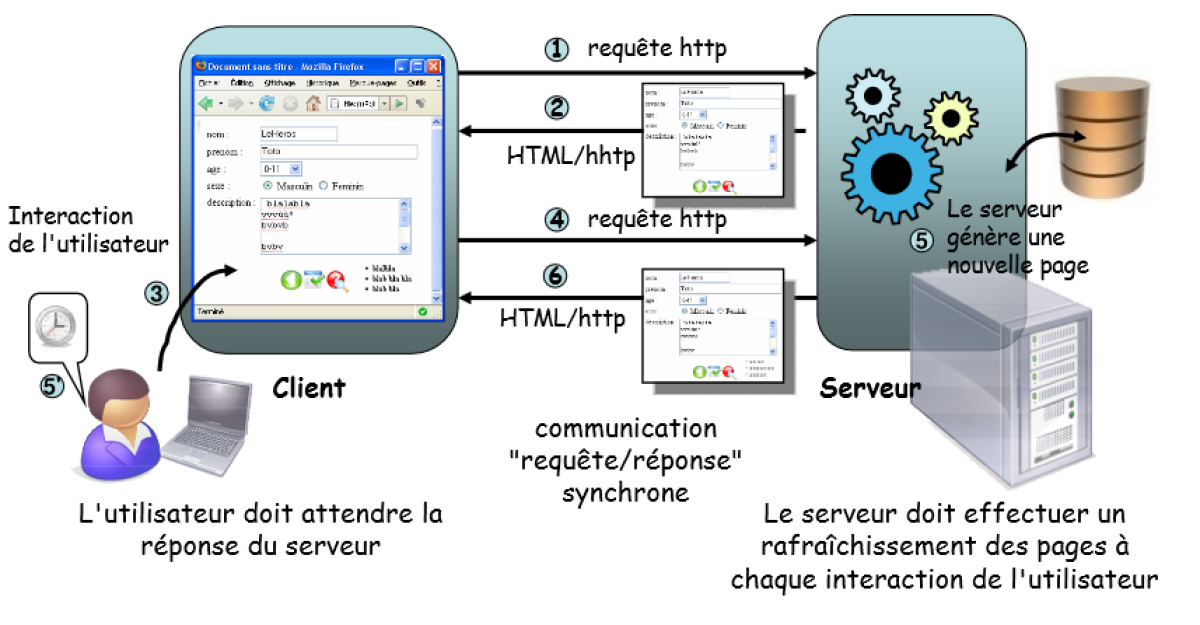 résultat d'une interaction constante entre le serveur et le client comme le montre l'exemple ci-dessous :